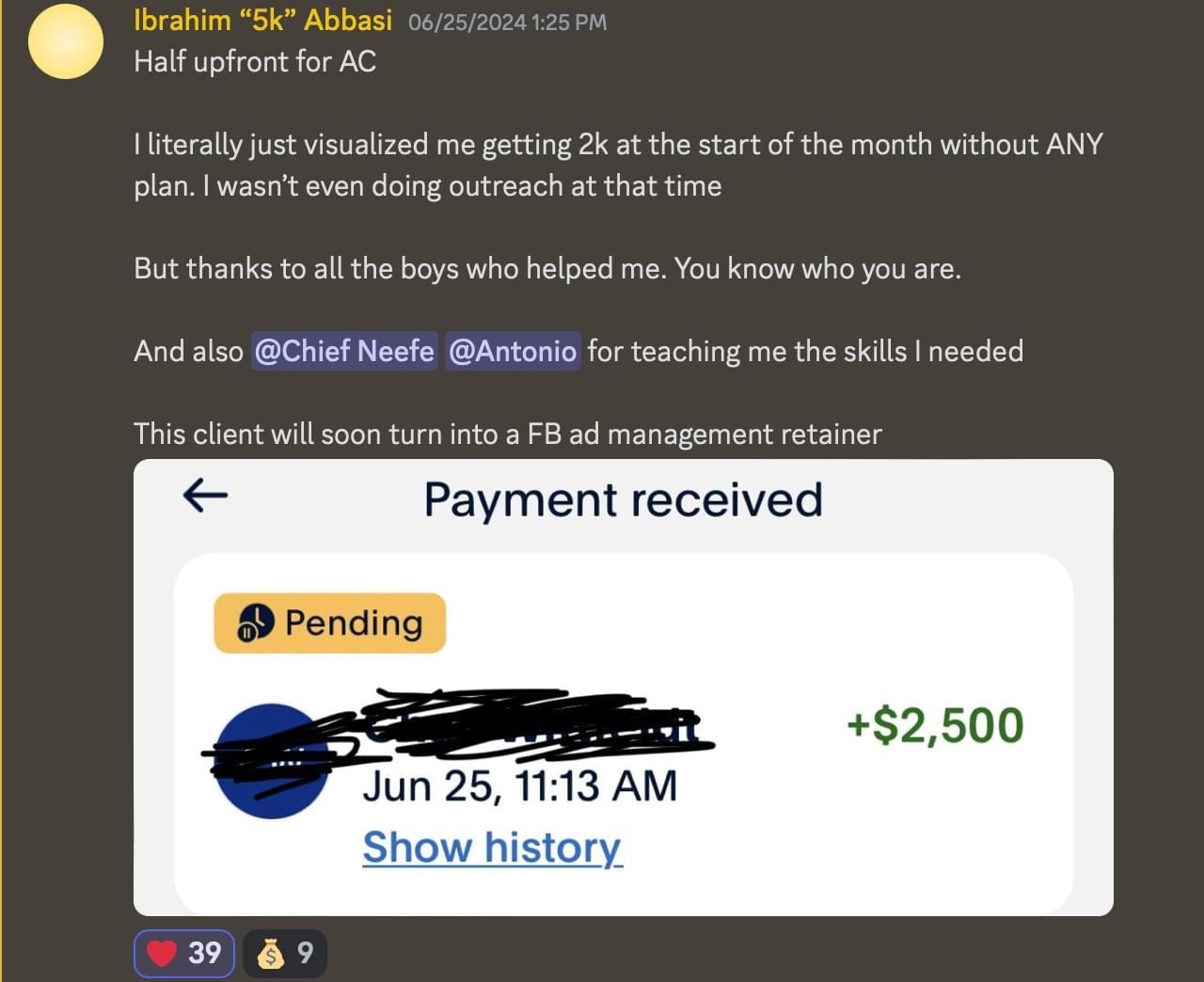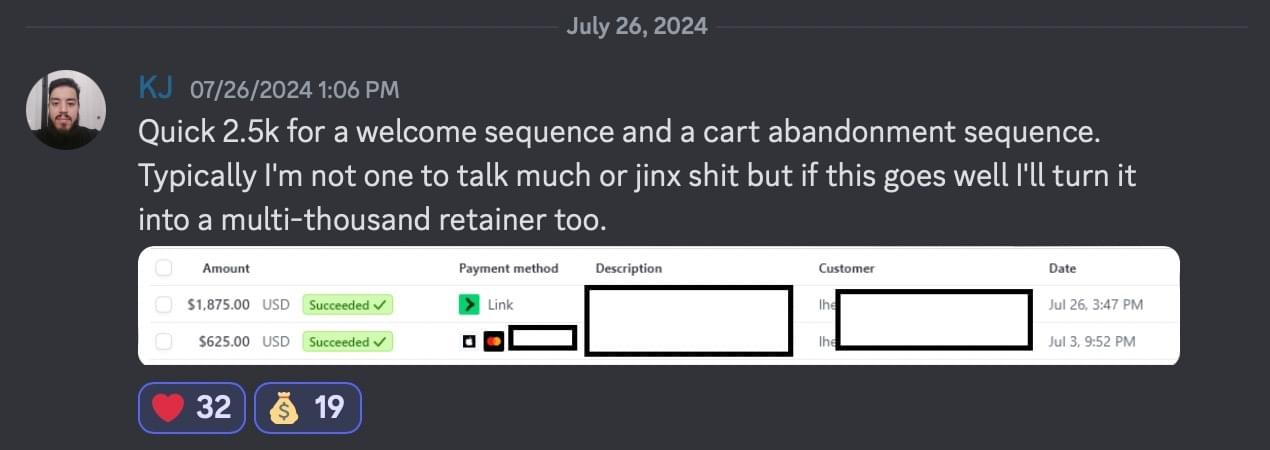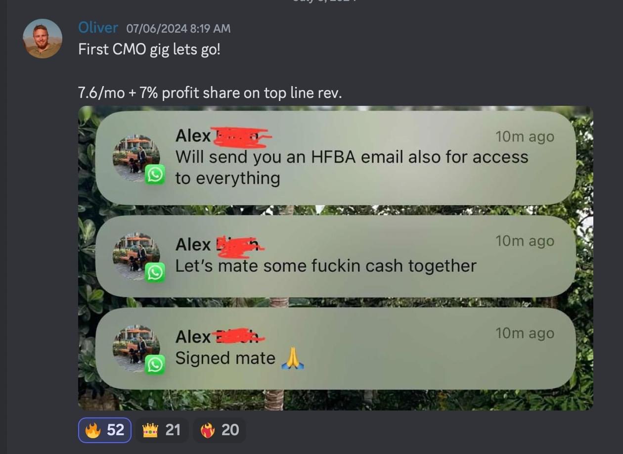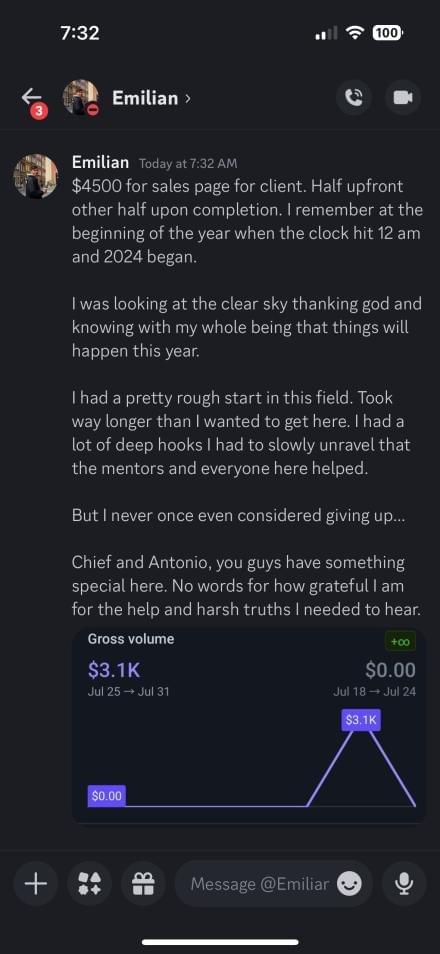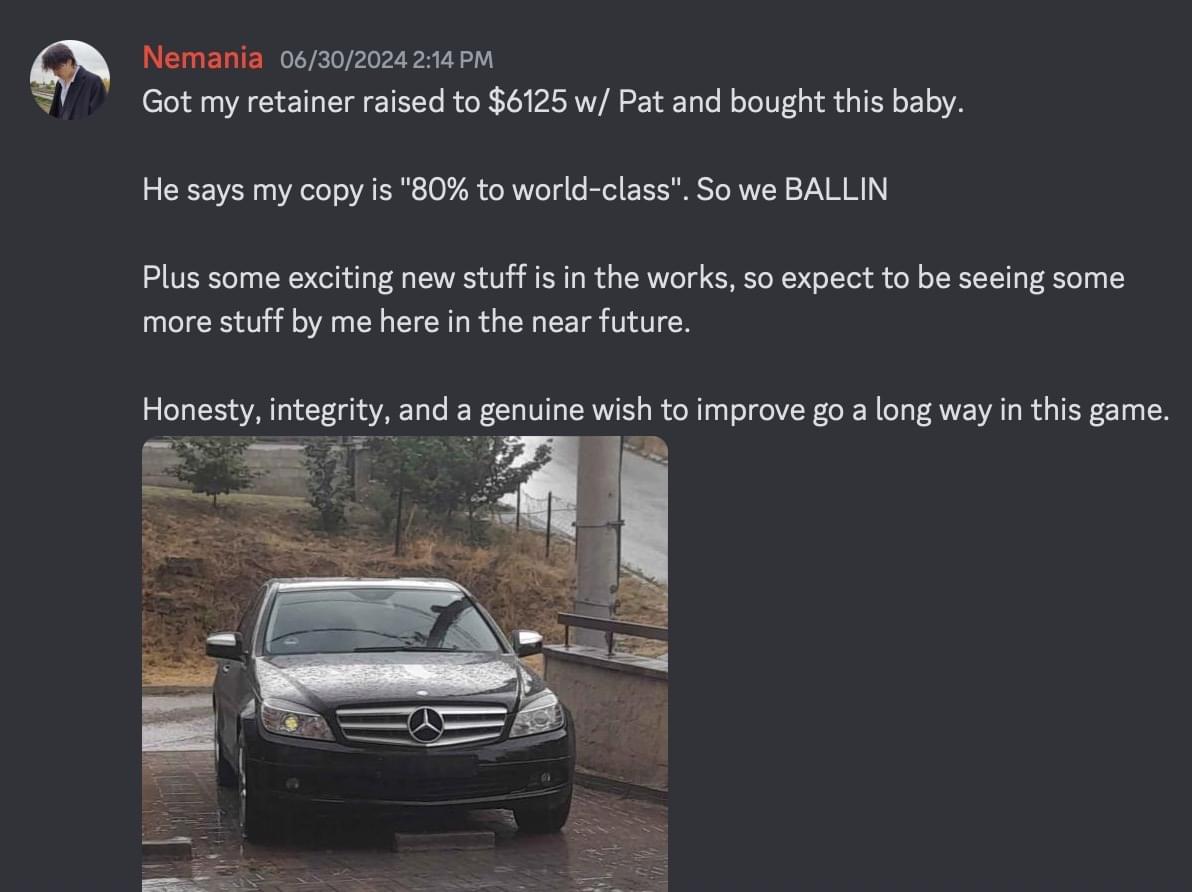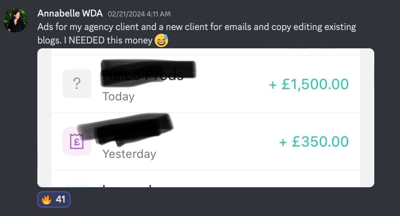 Peter's copy was so good that he got hired as the head copywriter for a 200k/mo copywriting agency for 6 months. Now, he's out on his own earning 8k/mo with just 1 client.